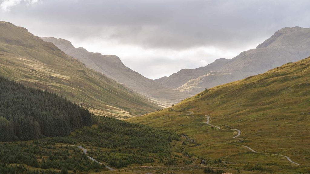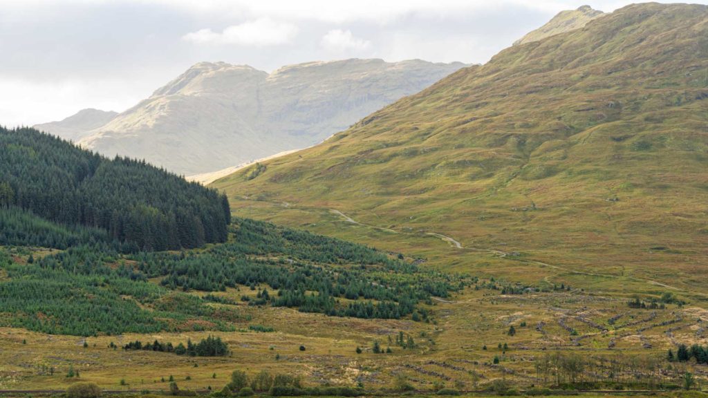 Across Loch Lomond, when green sleeves of forest and drifting clouds set the ambiance